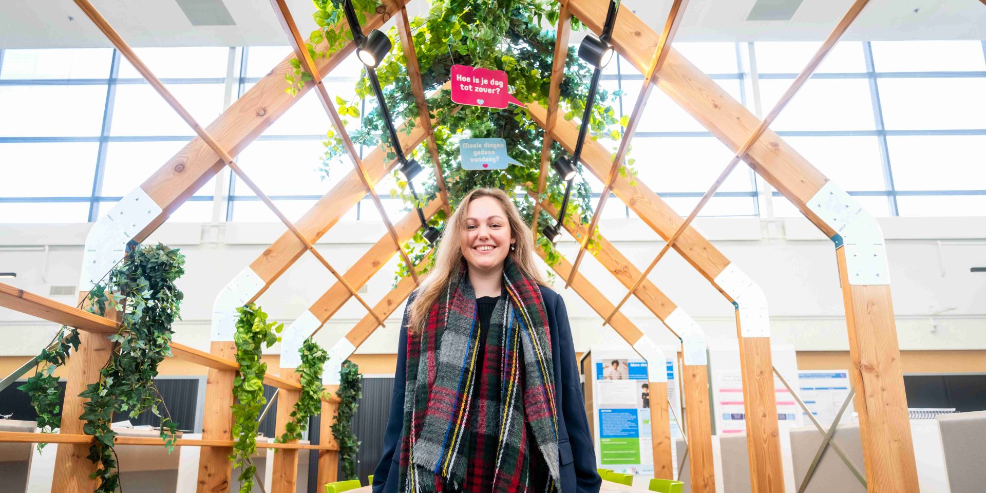 ‘In het Child Study Center werk ik samen met professoren, hoofddocenten en assistenten. Daarin merk ik geen hiërarchie. Ik heb het gevoel dat mijn inbreng net zo belangrijk is als die van iemand met veel meer onderzoekservaring. De sfeer is informeel en gezellig. Op woensdag is doorgaans iedereen er, dan leer ik over andere projecten en lunchen we samen. Ook hebben we regelmatig een borrel of een uitje. Het is superfijn dat twee onderzoeksassistenten mij helpen. Zij zijn helemaal ingewerkt op het onderwerp, omdat ze hier al een paar jaar in dienst zijn. Ook krijg ik goede begeleiding en is er veel vrijheid om mijn werkuren in te delen. Ik werk vier dagen per week. Accare vindt het belangrijk dat je je mentale gezondheid serieus neemt. Heb ik veel aanmeldingen voor het onderzoek, dan werk ik meer. En is het wat rustiger, dan neem ik wat vrije tijd.’